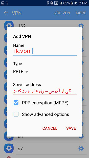 3- VPN را فشار دهید و سپس Add VPN را فشار دهید